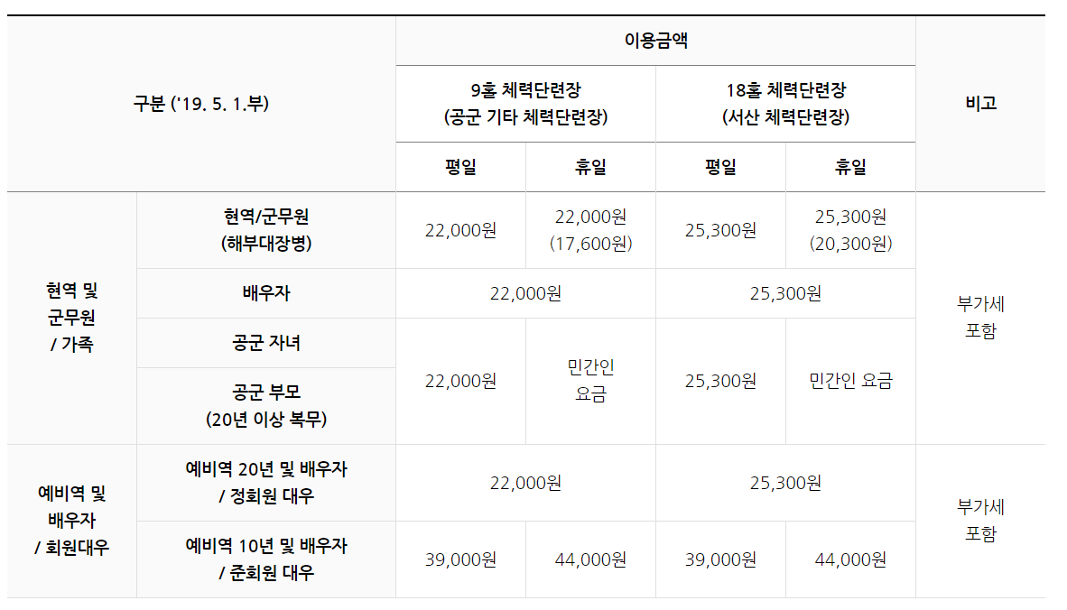 공군복지시설예약체계 그린나래호텔 이용 요금 안내입니다.
